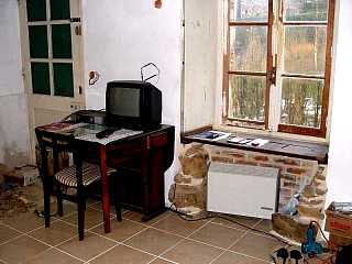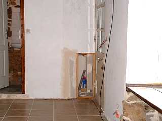 This visit I stayed at my house in Ambrières les Vallées . The floor level near the back door was adjusted and the remaining tiling completed ( also see earlier pictures ). The window reveals were plastered ready for decoration.