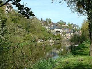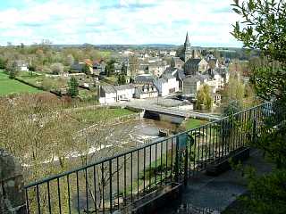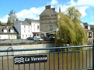 View looking down from the town onto the River Varenne ... and the Restaurant on the far side