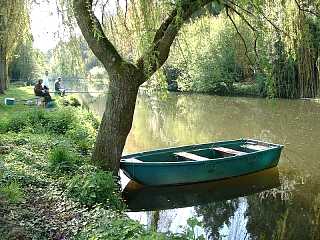 The River Varenne is popular with fishermen .... and looking back towards the town