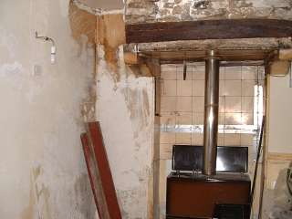 The tradifarge jointing of the exposed stones is almost complete. Remaining work on the steps to the second house, and wood trim to doorways etc. should be completed next visit .... furniture can then be repositioned between the downstairs rooms for more comfy living.