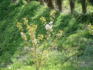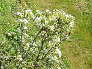 The pear trees in the garden are full of blossom, the cherry for the first time