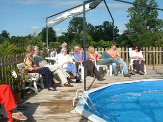 lives over in France. Sara and Tony laid on a party, and relatives from Jersey and England came over to attend. The weather was fine, and the food, as ever, was excellent - the pizza oven being well used. |