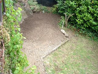 At my place the peach tree was cut down leaving a couple of new branches, and the remaining area of the top garden was cleared and levelled using the last of the buried concrete edges. The lizards were at first concerned at the change in their surroundings, but soon settled down. As ever, the grass needed cutting !