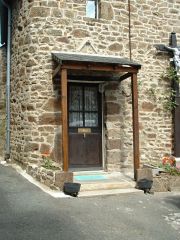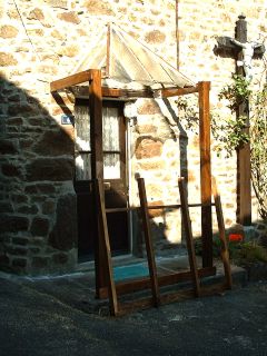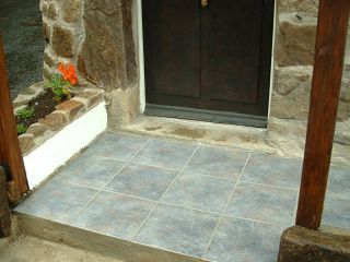 Meanwhile, the new porch gradually took shape. A thick wall was built, with provision for flowers, to blend in with the house ... and to protect the structure from possible car damage ! The roof was tiled with slates to match the property, and the entrance laid with blue/grey tiling. In making the step I uncovered the original cobble stones which existed before the days of tarmacadam.
