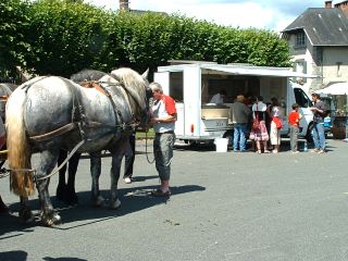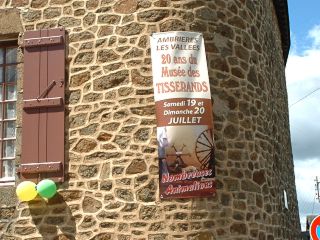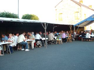 In Ambrières-les-Vallées it was the 20th anniversary of the Musée de Tisserands ( weaving - see earlier information on Ambrières ). In the evening hundreds of people gathered to have an open air meal, followed by dancing and other entertainment. During the day there were also stalls exhibiting local crafts, as well as entertainment, and horse and buggy rides round the village.