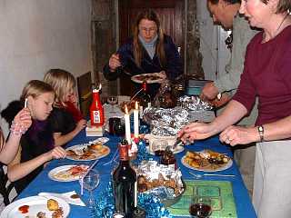 Christmas day lunch was at La Petite Reigniére, where Sara and Tony had also invited a couple of friends. Smoked oysters and mussels, paté, and Italian ham and figs, preceded the turkey ( Dolly to her friends ).