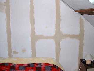 Boxing Day morning saw a little snow, just enough for a light covering, but it soon melted during the day. A start was made on re-fixing and extending the plasterboard panels in the bedroom, and tape jointing them properly ready for plaster and finish.