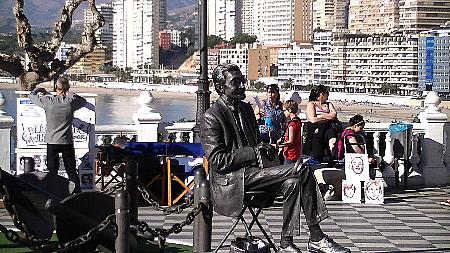 A pleasant day was spent in Benidorm on the Monday - with a fish and chip dinner at Rays 1, in the old town between the Poniente and Levante beaches, after having coffee and listening to the pan pipes on the Placa del Castell promontory above the old town.