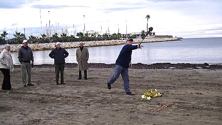 Leaving for the Christmas Pudding throwing ........................ On the beach during the throwing competition