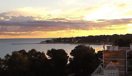 Although there was a slight drizzle on arrival at Alicante, it had stopped by the time the transfer coach reached Denia. In fact, the weather while away was generally superb - still and warm, with a calm sea. My room faced Las Rotas and the sunrise - although on one morning there were worrying clouds, which disappeared during the morning. One night there had obviously been some showers - but the bowls area was dry by 10.00 a.m.