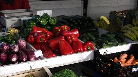 Valencia is the major orange growing area in Spain ( over 40 different varieties ). Lovely fresh produce at a fraction of the cost of an English supermarket ! Other vegetables were equally attractive - Moraira market.