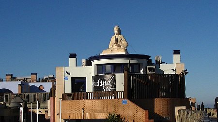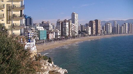 In Benidorm the Old Town headland is a favouite spot, where there are cafes. One can see in both directions, the Levante and Poniente beaches - the small beach and marina below the headland, and the island offshore - as well as enjoy the entertainment.