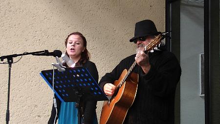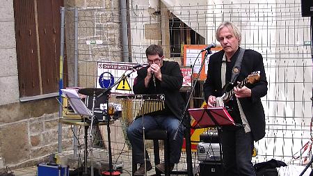 The main attraction with Sue and Pete on the Saturday was the Gorron Fete de la Musique, after a lunch at La Petite Reigniere. Fortunately the weather stayed dry most of the time - just a very light shower - although the temperature was low. Carys and Tone were performing there, as well as Carys playing with the Classe Orchestre and Lyre Gorronaise.