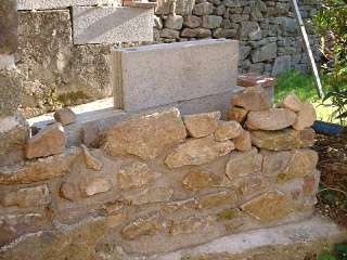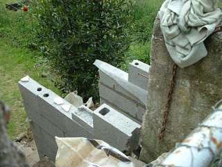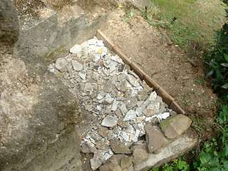 Outside, the rear pathway has been cleared ready to resurface. A small store is being built alongside the steps to the garden to get building materials, garden tools and other such equipment out of the house. This will enable better use of the storage space inside the house. |