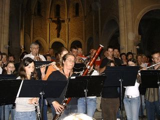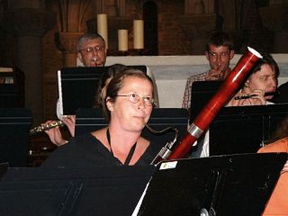 Sara played bassoon with Lyre Gorronaise at the Gorron Saltimbanque Music Festival. Again, use was made of the Gorron Church. The orchestra numbered about 30 people - there was also a choir of about the same number.