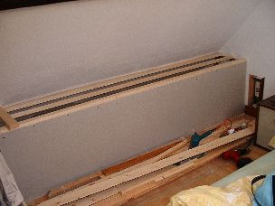 After watching the Monaco Grand Prix, a start was made on more storage in the original bedroom. This will provide a convenient shelf and also storage, for timber at present, but later when the wood is used, for cases and other larger items.
