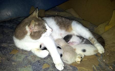 Again the patter of tiny feet at La Petite Reigniere ... two of the cats produced four kittens each !
