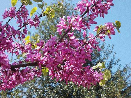 As ever, things had grown. The Judas tree in particular looked extremely colourful. The mistletoe clusters were still just visible in the trees.
