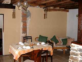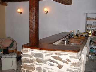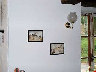 The bar unit top was lowered and a corner post added. The wall and ceiling lights were fixed and wired up. With the wall now plastered and pictures added it is starting to look a bit more like a room ...... although a final decision has to be made about heating before the chimney flue can be dealt with.