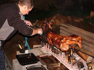 But the social highlight of the visit was the spit roast of a pig at La Petite Reigniere, a function attended by both French and English.