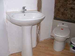 More work was done on the upstairs loo which is now ready for wet and dry plumbing. Some of the wiring has been started in the first house, and an outside light is now installed.