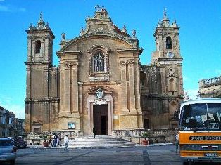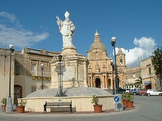 statue and church at Siggiewi. Again, it is usually in the older towns that one sees the more interesting architecture. |