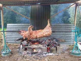 A highlight of this visit was the pig roast at Sara and Tony's place .......