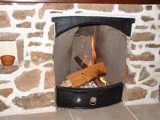 was finished with a plate and liner. It was then tested to check the smoke was coming out of the chimney, and not into the bedroom above ! All seems well, and it is now ready for use should I be there in the winter months. I have plenty of scrap wood - and a supply of 'briquettes'. |