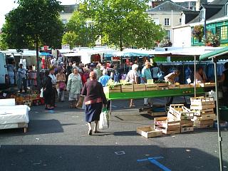 ( Above ) Le Local, at Couesmes-Vaucé, where an excellent Sunday roast ( buffet ) can be had ..... and part of the Mayenne market.