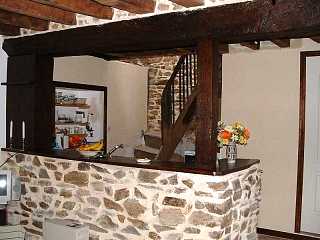 The store cupboard on the bar was installed, the " kitchen " walls were painted ( crepi ) and wood trims added. This area is now starting to look more attractive. The staircase and cooking area in the corner need finalising.