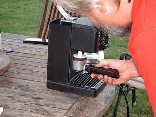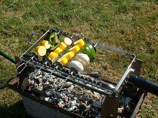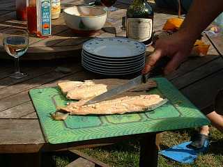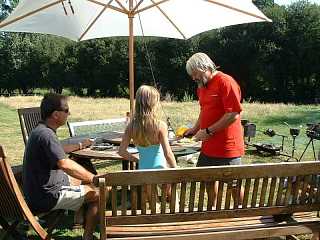 A BBQ at La Petite Reigniere permitted sampling of fish from a " smoke house " Tony had just built, brochettes and to cap it all ... coffee from an expresso machine!.