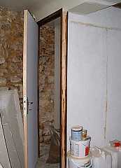 I had my first look into the roofspace of the " first " house .... another job, to clear the rubble and the many spider webs and to treat the timber, before I can start work on the room below. Some stonework near the front door, and above the fireplace, was cleaned of plaster, ready for pointing. A large cupboard was built under the stairs in the " first " house to give some storage space ... for when this room is no longer a workshop.