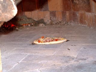 Below ............................ Pizza going in ........................................ ..... and a look inside the oven.