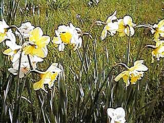 Below: The flag on the Tower......... the millstone in the path and the daffodils